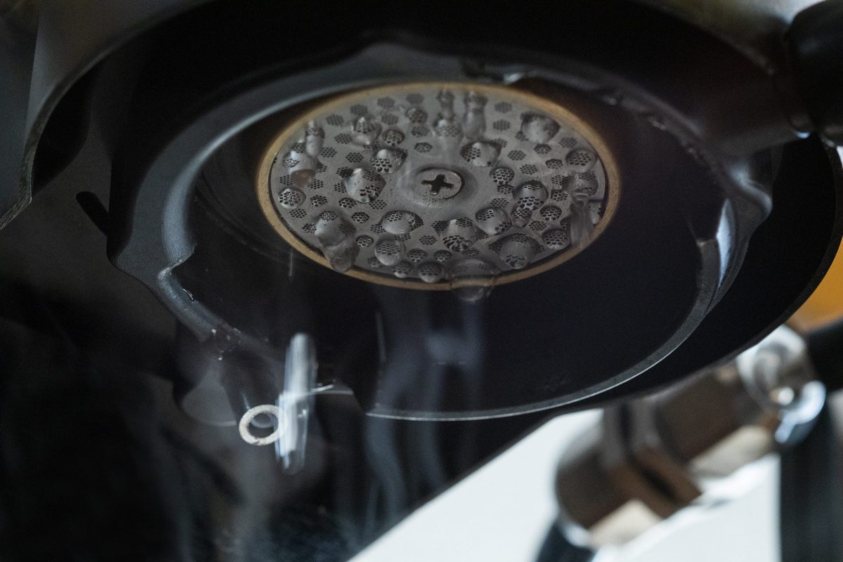 بر اساس قوانین فیزیک (آنتروپی) افزایش دما، افزایش جنبش مولکولی را در پی دارد. در مایعات، این افزایش جنبش مولکولی منجر به افزایش تبخیر سطحی نیز میشود. در شرایطی که علاوه بر افزایش دما، عامل فشار نیز در دستگاه اسپرسوساز دخیل است، هرچه به دمای جوش نزدیکتر شویم، جنبش مولکولهای آب در فضای جوشانه (Boiler) افزایش خواهد یافت؛ در نتیجه، در دمای بالا هنگام عصارهگیری، جریان آبی که از دهانهی هدگروپ (Group Head) خارج میشود، دارای دمای بالا، جنبش و آشفتگی بیش از اندازه است و به محض خروج از هدگروپ، بخشی از آن تبخیر شده و حجم بخار حاصل، بر شدت آشفتگی و رفتار تصادفی مولکولهای آب خواهد افزود. در نتیجهی این جریان متلاطم، آب به محض برخورد با سطح قرص قهوه (Puck) موجب شکستن آن شده یا با جابجایی بیش از حد ذرات قهوه هنگام عصارهگیری، موجب کانالسازی بیشتر و خروج حبابهای گاز میشود. همانطور که میدانیم، در پدیدهی کانالسازی، آب با سرعت زیاد از شیارهای ایجاد شده در قرص قهوه عبور میکند و به این صورت، عصارهگیری از تمام ذرات به طور کامل و کافی انجام نمیگیرد؛ در نتیجه قهوهای کمعصارهگیریشده (Under Extracted) با میزان کل مواد محلول کمتر خواهیم داشت.
