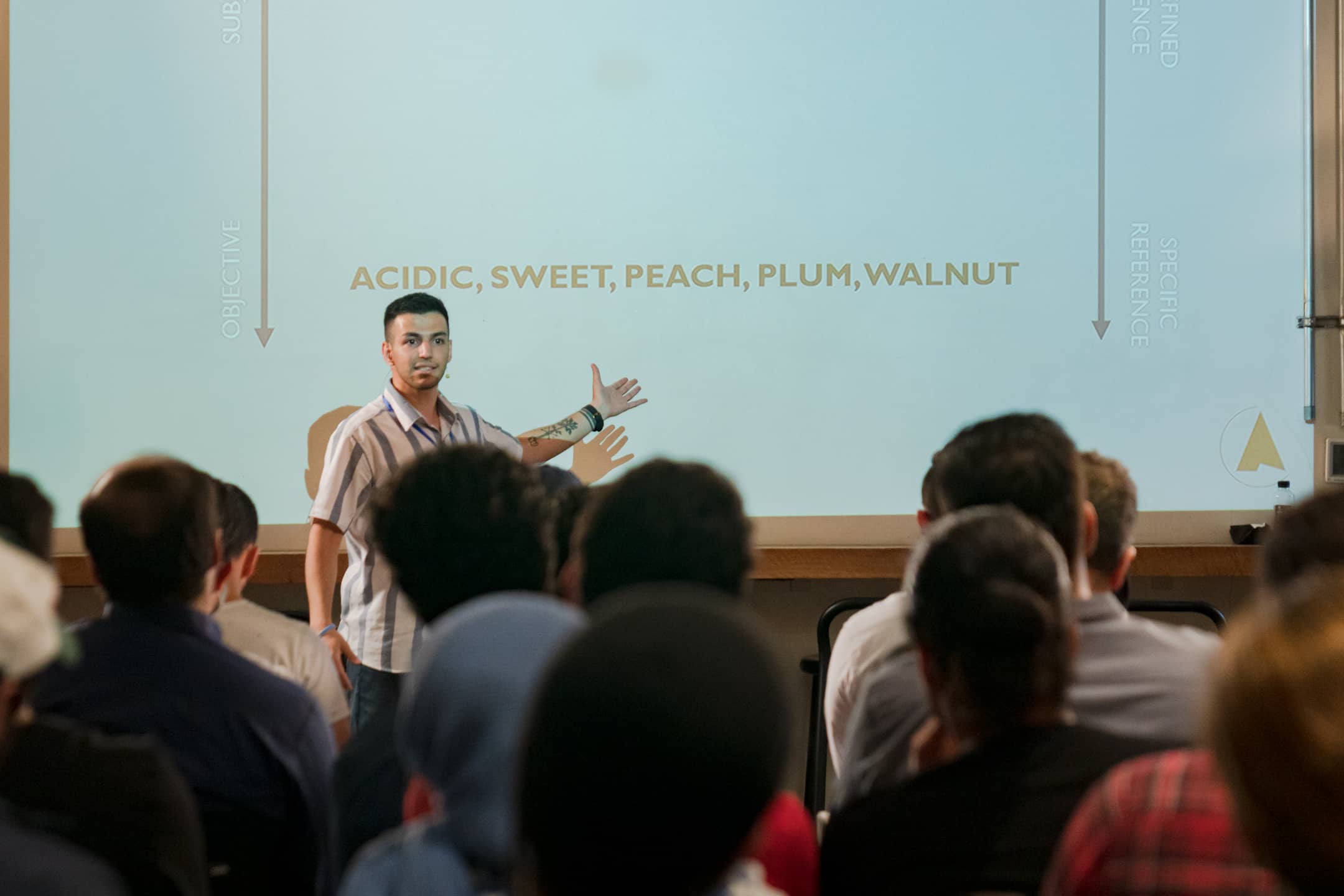 در بخشی از رویداد یکم امید داداشی یکی از مدرسان دورههای آموزشی کارخانه قهوه ژاو کارگاهی با عنوان «توصیفگرهای حسی قهوه و کیفیت آب» (Coffee sensorial descriptors and water quality) برای شرکتکنندگان برگزار کرد.